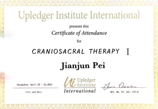 2024年参加Upledger国际学院颅骶椎疗法课程培训,并获得合格证书