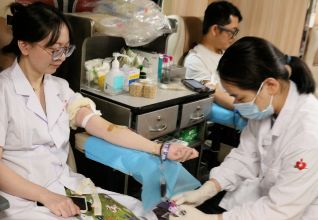 在赵书记的带领下,医院的党员、职工们积极响应,纷纷加入到无偿献血的行列中。他们之中,既有院长办公室的领导,也有临床一线经验丰富的医生,夜以继日辛劳的护士,以及默默支撑日常运营的行政后勤人员,他们每一个人都怀揣着对党的忠诚和对社会的大爱,用实际行动诠释了“医者仁心”的深刻内涵。