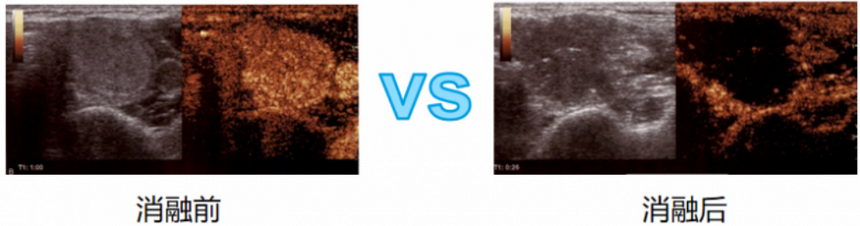 使用造影剂后散射回声增强,明显提高超声诊断的分辨力,敏感性和特异性的技术。在甲状腺乳腺结节消融前、中、后的评估都起到了重要作用。消融前治疗规划: