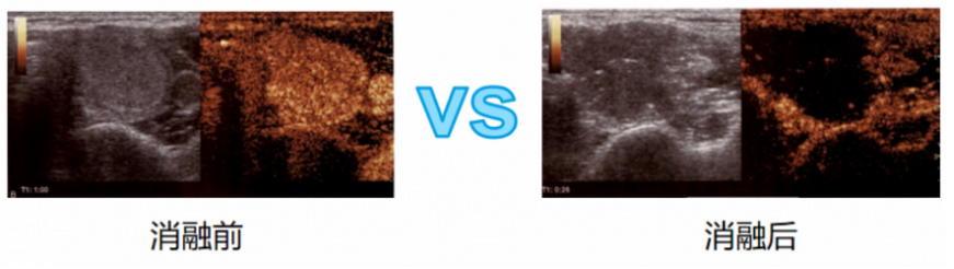 使用造影剂后散射回声增强,明显提高超声诊断的分辨力,敏感性和特异性的技术。在甲状腺乳腺结节消融前、中、后的评估都起到了重要作用。消融前治疗规划: