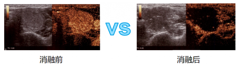 使用造影剂后散射回声增强,明显提高超声诊断的分辨力,敏感性和特异性的技术。在甲状腺乳腺结节消融前、中、后的评估都起到了重要作用。消融前治疗规划: