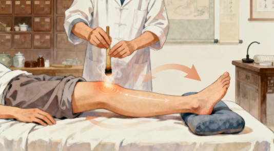 针对气虚血瘀证型,采用灸法每日1次(10天1疗程),改善下肢血液循环;配合中药涂擦活血化瘀,舒筋通络。