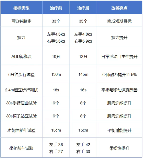 经过系统治疗,奶奶的各项指标均实现显著提升,康复效果一目了然: