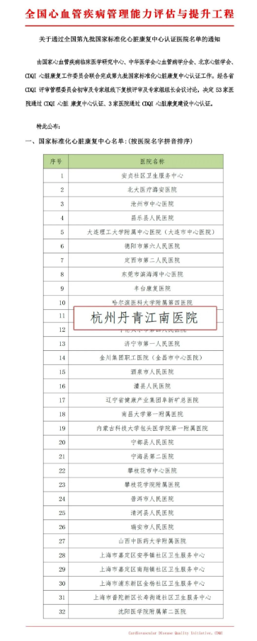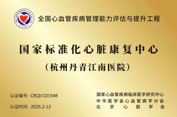 2025年2月12日,杭州丹青江南医院通过全国第九批国家标准化心脏康复中心认证!
