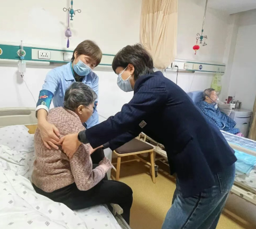 随时指导:在细节中体现专业 查房过程中,小敏的目光总是敏锐地捕捉着护理中的每一个细节。“阿姨,给奶奶翻身时角度可以再大一些,这样更舒服。”“叔叔,喂饭的速度可以慢一点,让爷爷有足够的时间咀嚼。” 这些看似微小的指导,却能让护理工作更加精细化,让老人感受到更多的舒适与尊严。