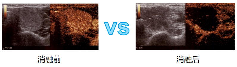 使用造影剂后散射回声增强,明显提高超声诊断的分辨力,敏感性和特异性的技术。在甲状腺乳腺结节消融前、中、后的评估都起到了重要作用。消融前治疗规划:
