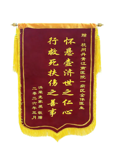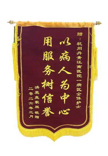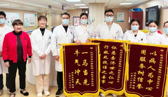 近日,在我院一病区发生了温暖感人的一幕:患者洪爷爷的家属将三面精心制作的锦旗送到了医护人员手中,它不仅承载着患者家属满满的感激之情,更是见证了一段长达数年的医患深情。